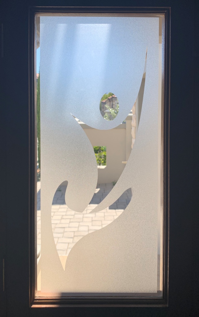“Frosted” viniel patroon op glasvenster.