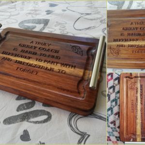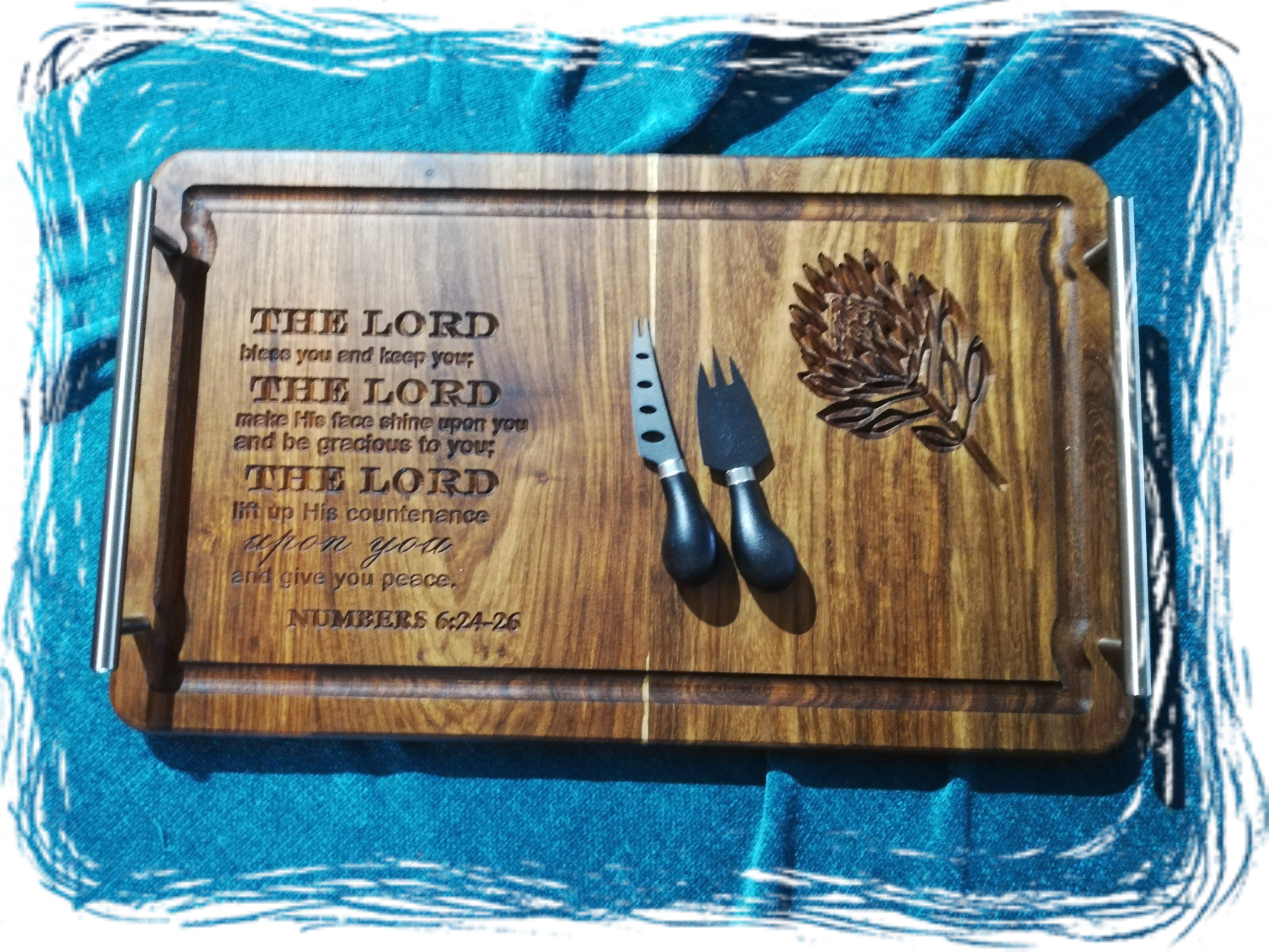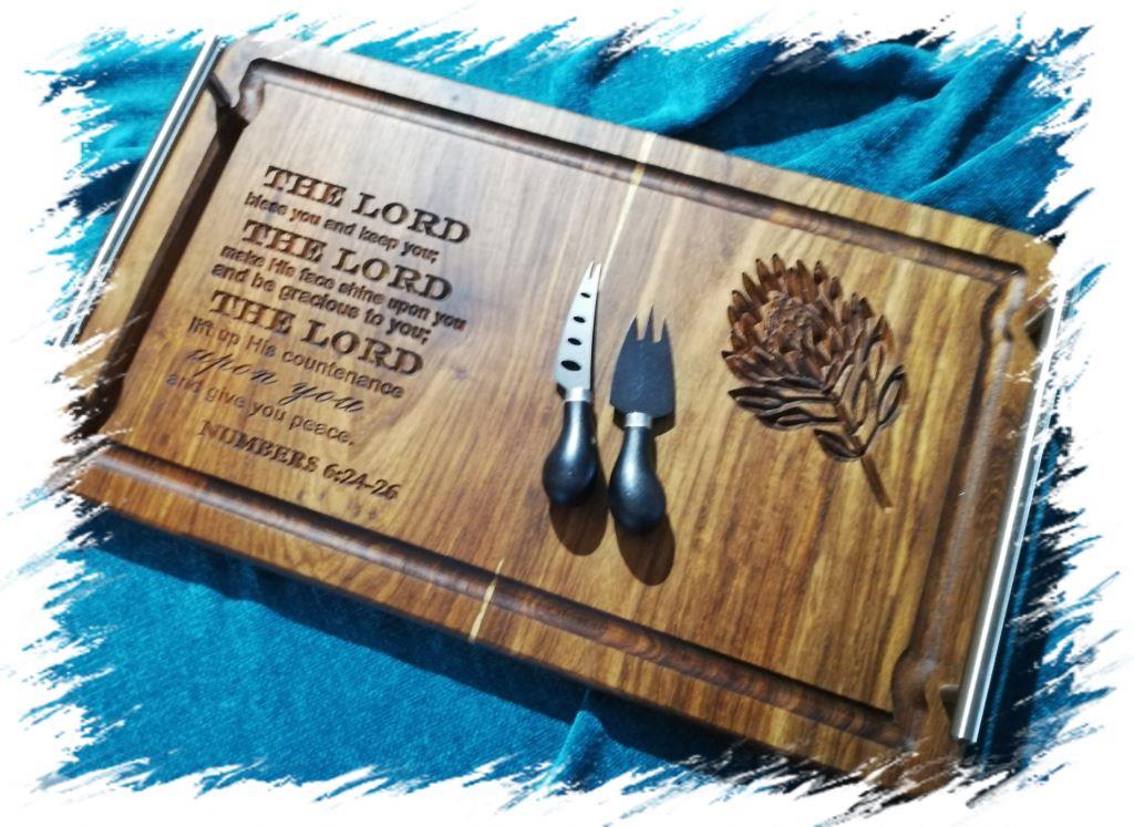 500mmx300mm Kiaat Kaasbord gegraveer met CNC Router.