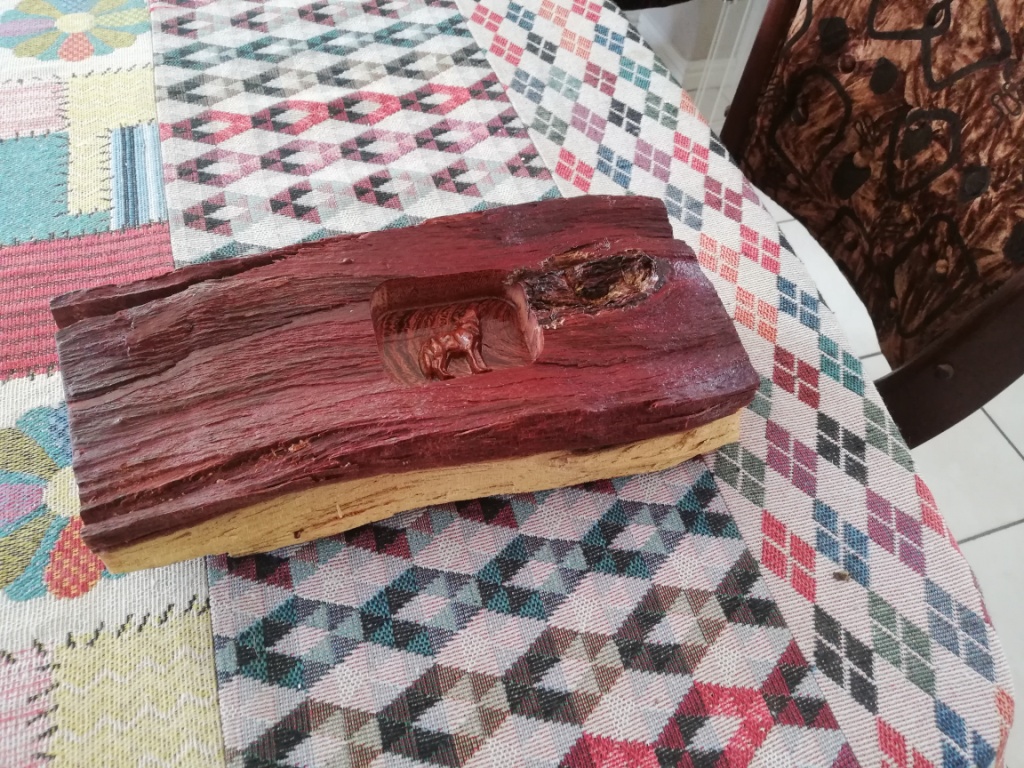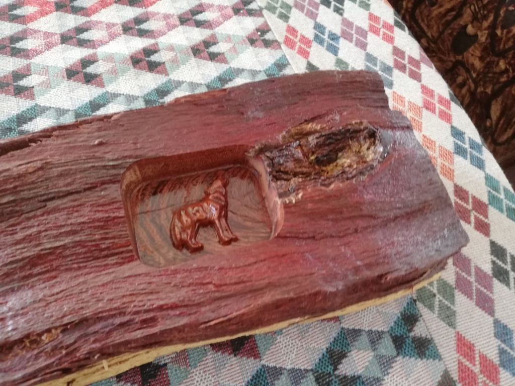 Wolf gesny uit Kameeldoring stomp. As tafel ornament of papier gewig.